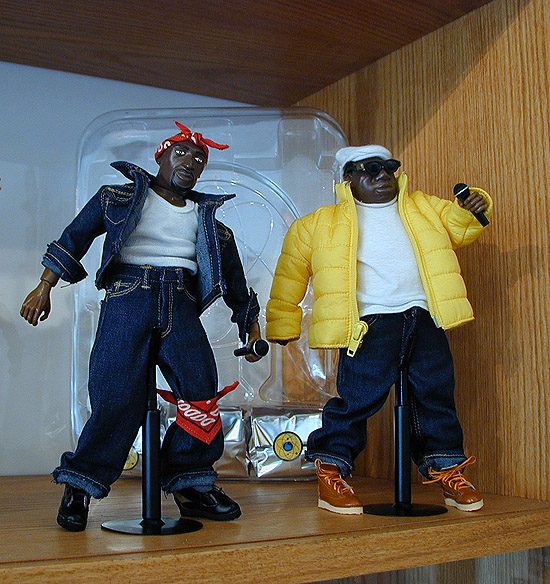 LG: Do you ever collaborate with anyone? DB: One of the things that we are curious about are collaborations -- New York collaborations -- and how the collaborators met each other , how they came about. JEH: I've collaborated on the toys, on a new project: the Biggie Smalls and Tupac figures. I collaborated with a friend of mine named Masa, who is a sculptor. Those are the first two figures that we are trying to put out, and produce. We're working on licensing right now. I know Masa from Brooklyn, and mutual friends, for about eight years. Masa is like me; he pretty much does everything. He paints, he sculpts, he also does music, he's working on some music now in Japan. Like most of the people in my circle are artistic whether it's drawing or fine arts, or singing or dancing. DB: Does being in a community of so many designers influence your work? Is the design community a big part of your work? JEH: I'd say it's motivating, not influencing, especially when someone is successful, and being productive, and it shows, that motivates me. That's why I do what I do. A lot of it has to do with money, because of how we need to live in society, but a lot of it has to do with creating something and taking it from that thought to the actual finished product, and having people enjoy it. That's one of the main reasons that I do it. Let's say that a friend is having an opening of his work; that motivates me to get my stuff finished. As far as too many artists, well, everyone in their own way is an artist, whether they are smacking spoons on their knees…It's very motivating; everyone else sees the same things but it all depends on how you see it, which makes you the artist, which makes you more original or more creative. A lot of people tend to get influenced by other artists…but it's more motivated by what you see. It's how you take it and how you flip it.